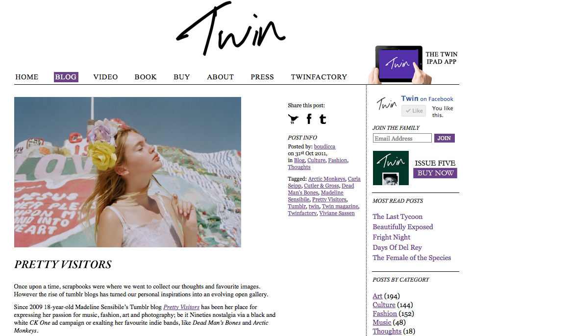Check out my interview with the wonderful Madeline of the Tumblr Pretty Visitors. Image via twinfactory.co.uk