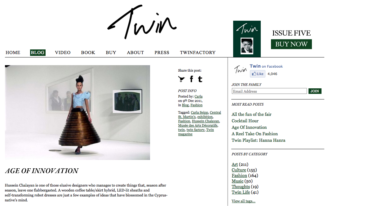 Now in its final days of display, Hussein Chalayan: Fashion Narratives at the Musée des Arts Décoratifs in Paris pays tribute to a true fashion visionary. Comprised of past collections, installations, fashion shows, projections and research, the exhibition is as multi-layered as the CSM graduate’s work itself.