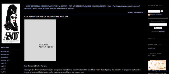 Mercury By Ariana Reines On A Shaded View On Fashion Blog