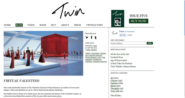 This week marked the launch of The Valentino Garavani Virtual Museum, an archive of over 5000 images, videos and sketches set up in a three-dimensional palazzo landscape.