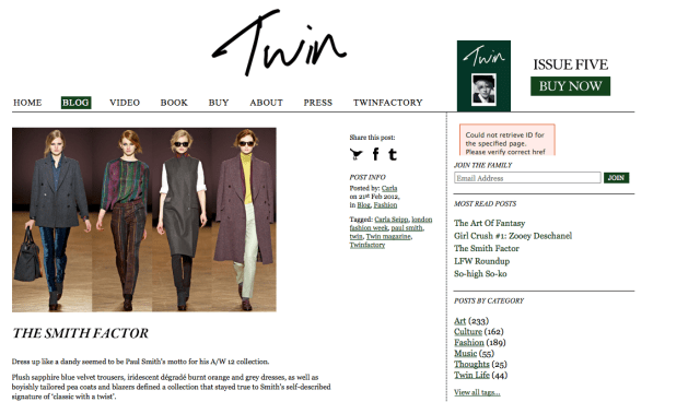Have a read through my runway report of the Paul Smith A/W 12 collection on the Twin Magazine blog here.