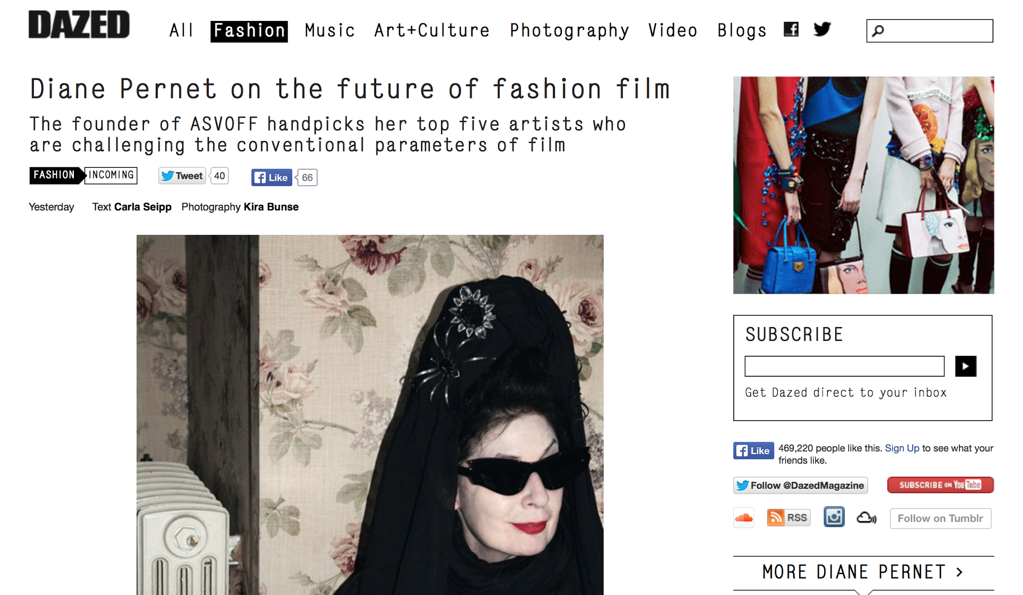 In celebration of ASVOFF NYC, Dazed asked founder and fashion film pioneer, Diane Pernet to chart her five favourite fashion films from the festival’s selection.