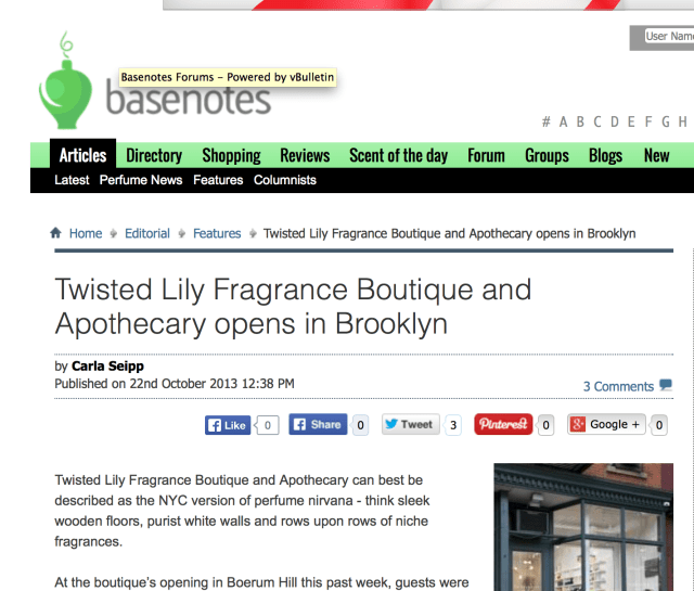 Twisted Lily Fragrance Boutique and Apothecary can best be described as the NYC version of perfume nirvana – think sleek wooden floors, purist white walls and rows upon rows of niche fragrances.