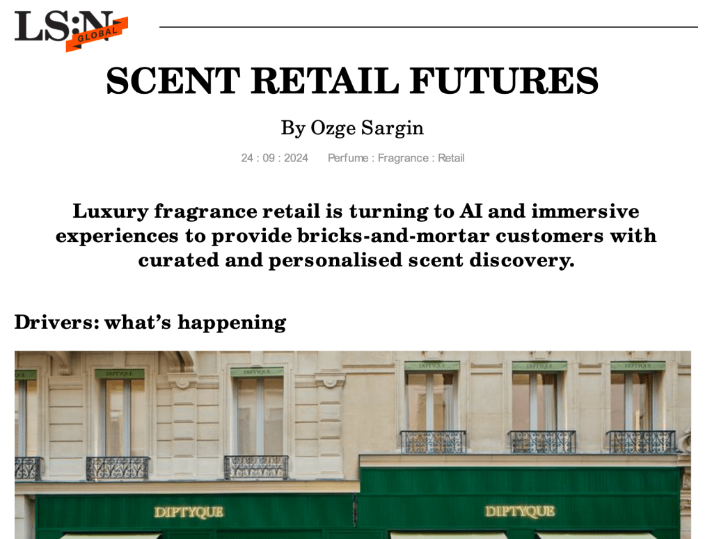 “‘The in-store experience will remain crucial for experiencing and discovering fragrances, given that scent is a medium that simply cannot be replicated online,’ fragrance journalist Carla Seipp tells LS:N Global. She adds that today’s luxury fragrance experiences are designed for consumers seeking to ‘slow down and savour the moment’.”